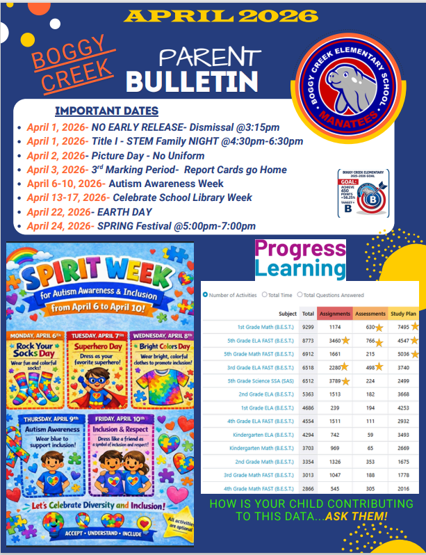 Stay up to date on the latest news from Boggy Creek and the Osceola County School District!